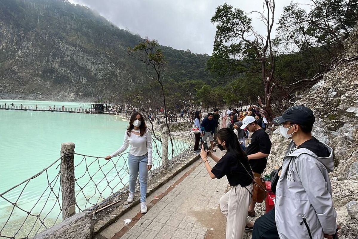 - kawah putih merupahkan tempat di mana anda bisa melihat pemandangan yang luar biasa menariknya dan di sini juga sering di gunakan sebagai foto spots dan banyak lagi yang and bisa menikmati dari jembatan gantung dan perkebunan teh yang luas